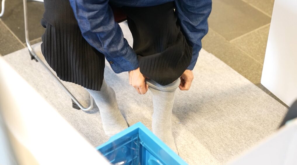 ふくらはぎの筋肉を持ち上げて引き締める設計、そして「6秒で履けて、3秒で脱げる」脱ぎ履きのしやすさをたくさんの方に実感していただきました。